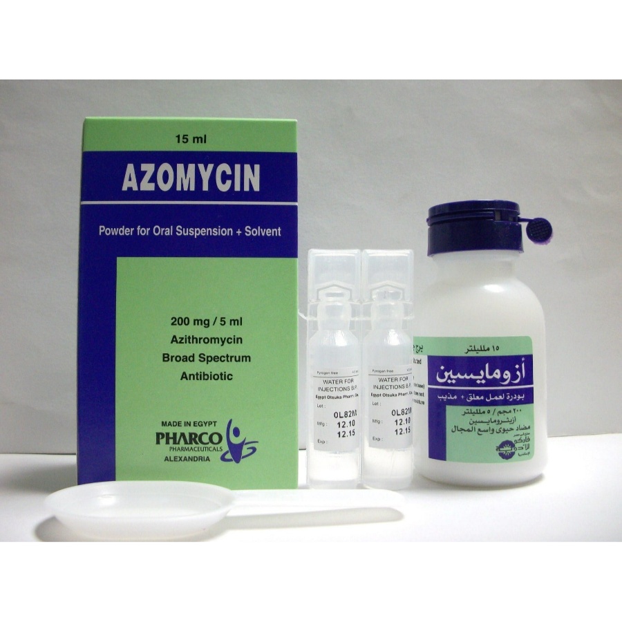 معلق أزوميسين (AZOMYCIN SUSPENSION) هو دواء مضاد حيوي، يحتمل أنه أزيثروميسين، على شكل سائل. يستخدم لعلاج العدوى البكتيرية، خاصة لدى مرضى الأطفال. هذا المنتج هو معلق بتركيز 200 ملجم/5 مل، مزود في زجاجة بحجم 15 مل.
