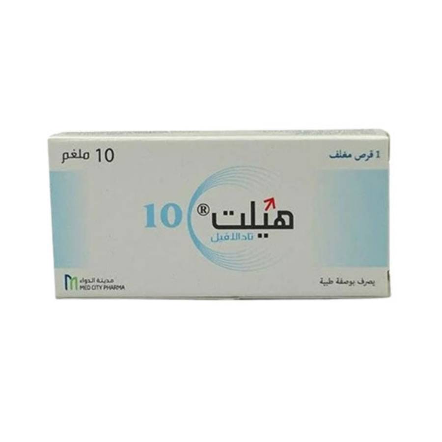 هيلت 10 ملجم هو دواء في شكل أقراص مغلفة. تحتوي العبوة على عدد من الأقراص، كل منها بتركيز 10 ملجم.