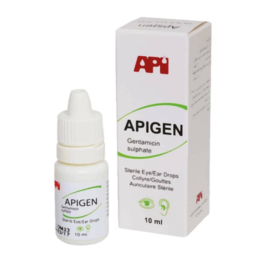 قطرات Apigen للعين/الأذن هي محلول معقم في عبوة بحجم 10 مل، مناسبة للاستخدام العيني (للعين) والأذني (للأذن). بناءً على لاحقة الاسم "gen"، من المحتمل أنها تحتوي على الجنتاميسين، وهو مضاد حيوي. تُستخدم هذه القطرات لعلاج العدوى البكتيرية في كل من العين والأذن، وتتطلب تطبيقاً دقيقاً حسب توجيهات الطبيب.