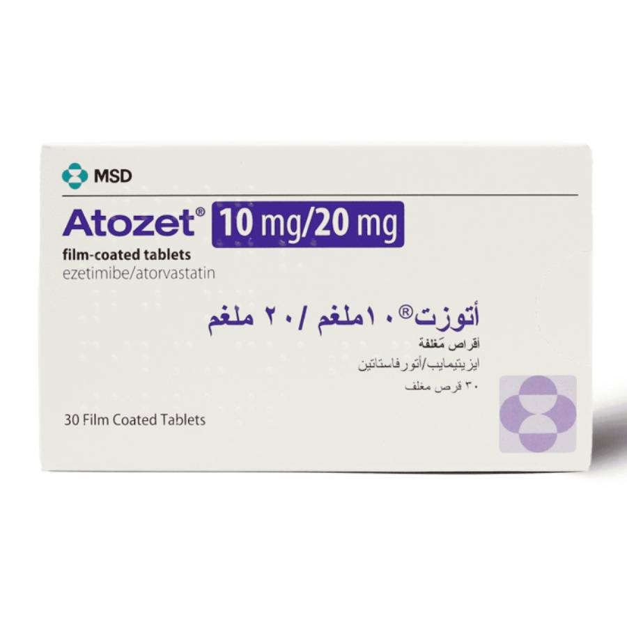 أتو زيت (ATOZET) هو دواء مركب لخفض الدهون. يحتوي على إزيتيميب وأتورفاستاتين بجرعات ثابتة. هذا المنتج المحدد هو أقراص بتركيز 10/20 ملجم، والعبوة تحتوي على 30 قرصًا.