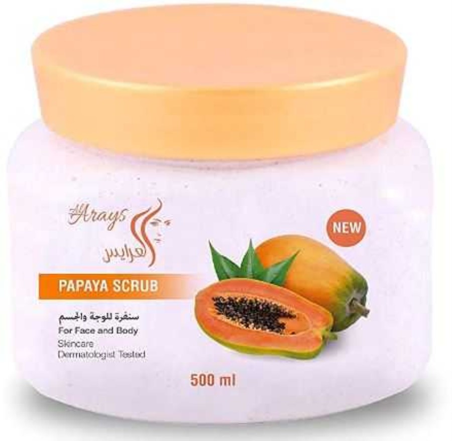 صابونة صنفرة من العرائس، بنكهة البابايا. تعمل على تقشير البشرة بلطف. طريقة الاستخدام: استخدمي الصابونة لتنظيف البشرة.