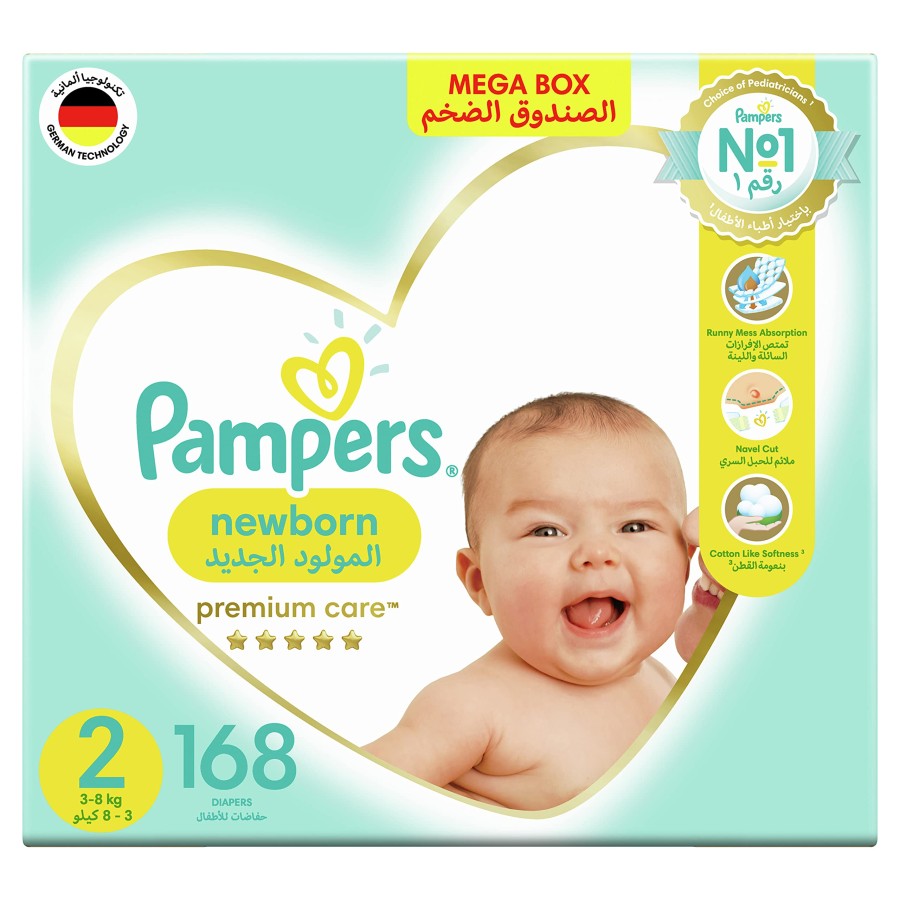 بامبرز ميجا رقم 2/ 3-6كجم 168 حبة صندوق
