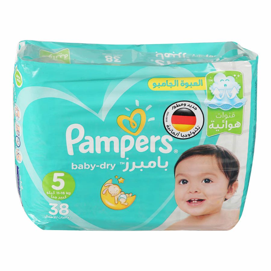 الوصف: بامبرز مقاس 5 كبير، مناسبة للأطفال بوزن 11-25 كجم. العبوة تحتوي على 3 أكياس، كل كيس يحتوي على 38 حفاضة. المزايا: اقتصادية ومناسبة للاستخدام اليومي. توفر حماية من التسربات. ناعمة على بشرة الطفل. طريقة الاستخدام: ضعي الحفاضة بحيث تكون الأشرطة اللاصقة في الأمام، ثم ثبتيها بشكل مريح.