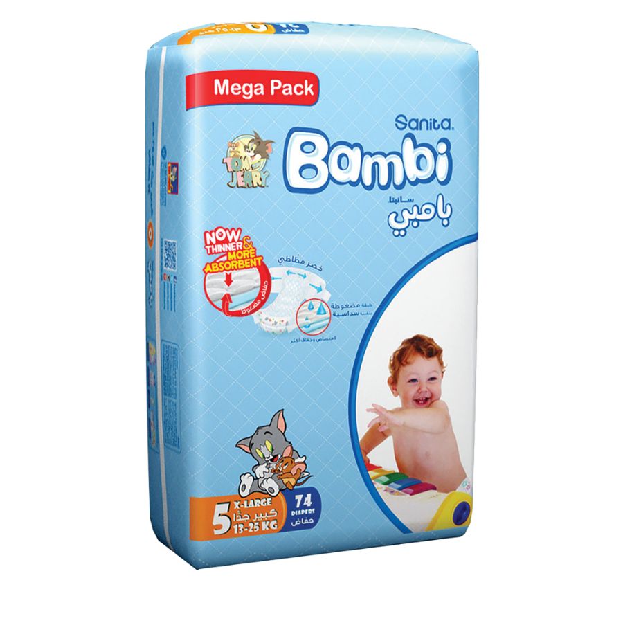 متوفرة في وحدتين، كل منها بها 74 حفاضة.