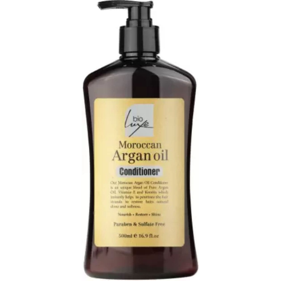 بلسم زيت الأرجان المغربي (500 مل) - بلسم مغذي بزيت الأرجان يعيد اللمعان والنعومة للشعر التالف. طريقة الاستخدام: ضعه على الشعر النظيف، اتركه 2-3 دقائق، ثم اشطفه.