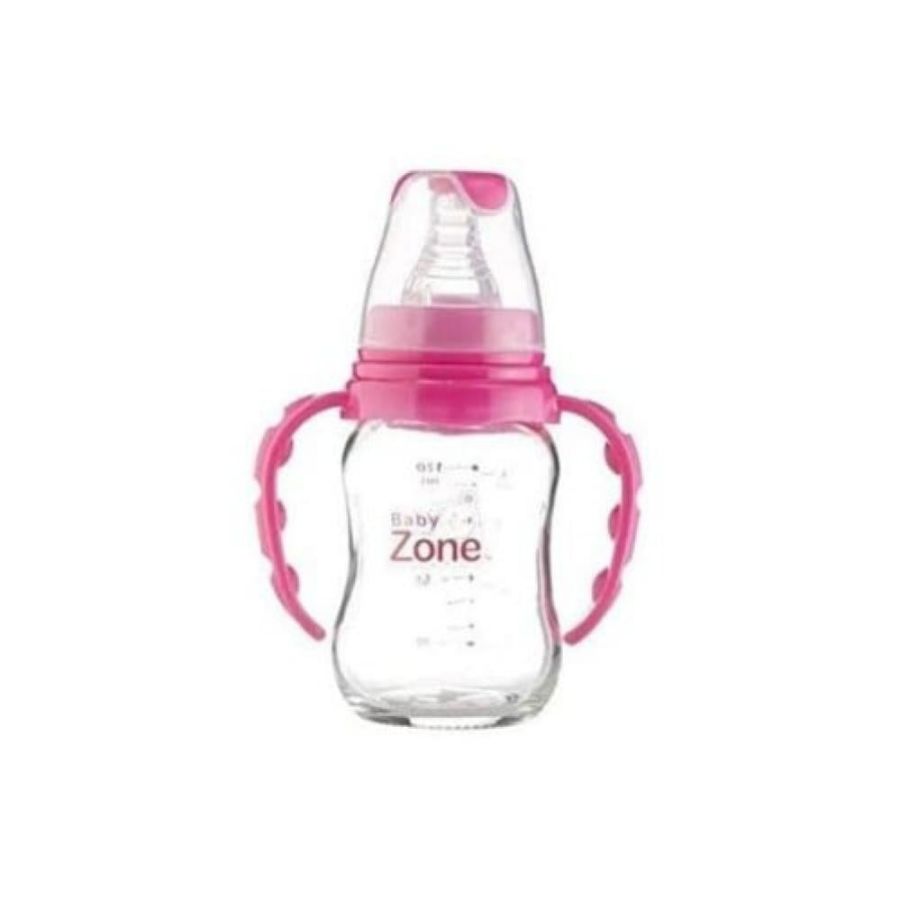رضّاعة زجاجية من بيبي زون، سعة 120 مل، بمقابض، موديل BLF 8525. خيار رضّاعة زجاجية أصغر، مناسبة للرضع الأصغر سنًا، وتتميز بمقابض لسهولة الإمساك.