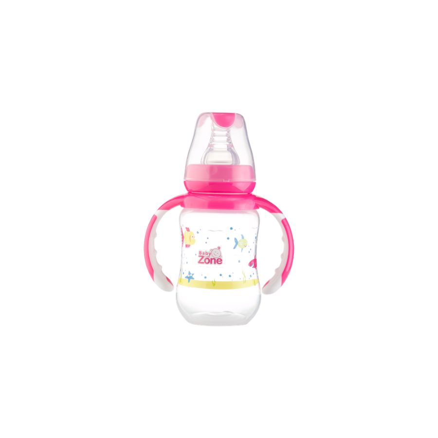 رضّاعة بلاستيكية من بيبي زون، سعة 120-125 مل، بمقبض (مفرد)، موديل BLF 8547. رضّاعة بلاستيكية صغيرة الحجم تتميز بمقبض لتسهيل الإمساك.