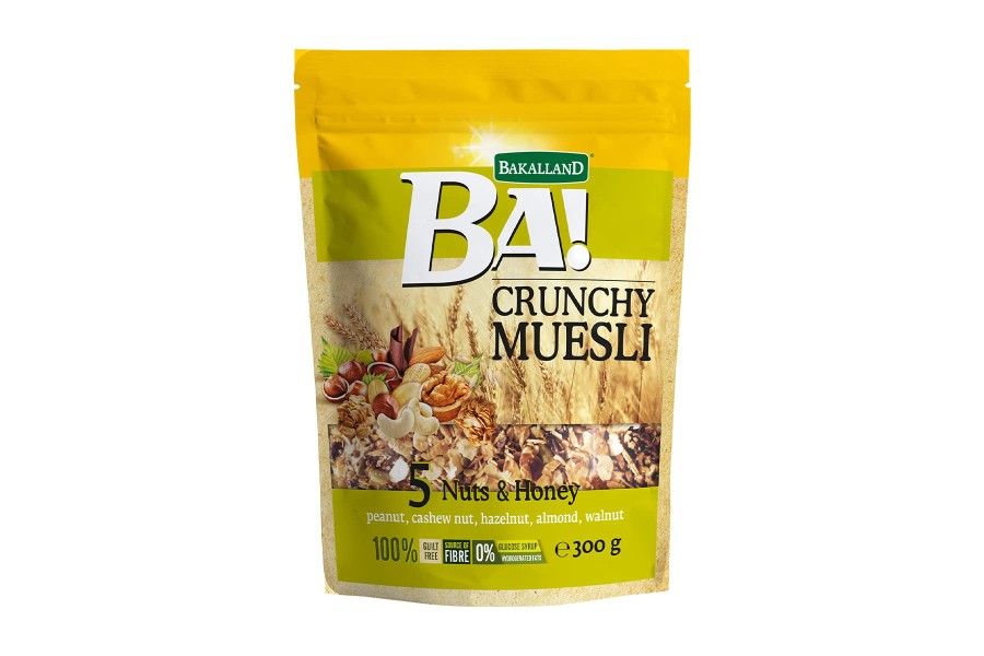الوصف (Description): مزيج مقرمش من الميوزلي مع 5 أنواع من المكسرات والعسل، مثالي للإفطار أو كوجبة خفيفة. المزايا (Benefits): غني بالدهون الصحية من المكسرات. يحتوي على العسل كمحلي طبيعي. مصدر صحي للطاقة والبروتين. طريقة الاستخدام (Usage): يمكن تناوله مع الحليب أو الزبادي. مثالي كوجبة إفطار أو وجبة خفيفة.