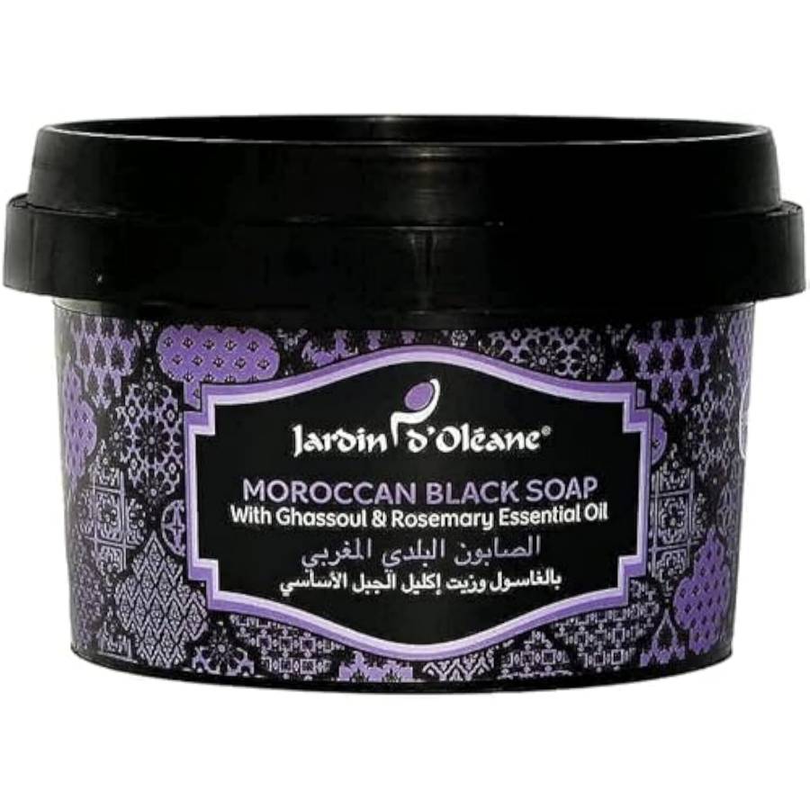 صابون مغربي أسود من جاردن دي أوليان بالغياسول وإكليل الجبل بوزن 250 جرام.