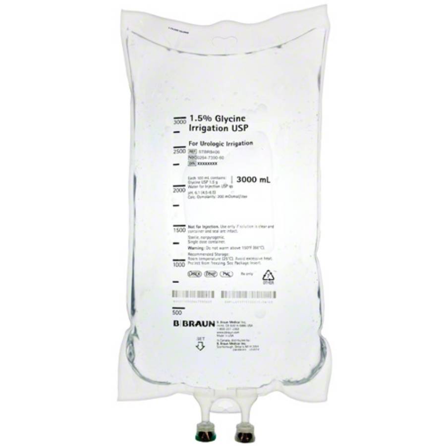 محلول الري بالجلايسين بتركيز 1.5% هو محلول طبي معقم. يأتي في عبوة كبيرة بحجم 3000 مل.