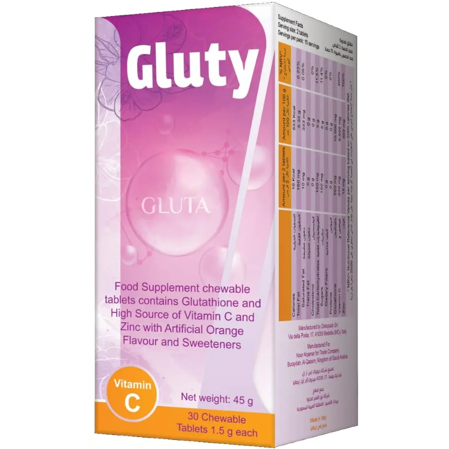 الوصف: أقراص قابلة للمضغ تحتوي على الجلوتاثيون لدعم صحة الجلد. المزايا: يعزز نضارة البشرة، يقلل من البقع الداكنة، ويدعم صحة الجلد. طريقة الاستخدام: قرص واحد يومياً. المحتوى الغذائي: جلوتاثيون.