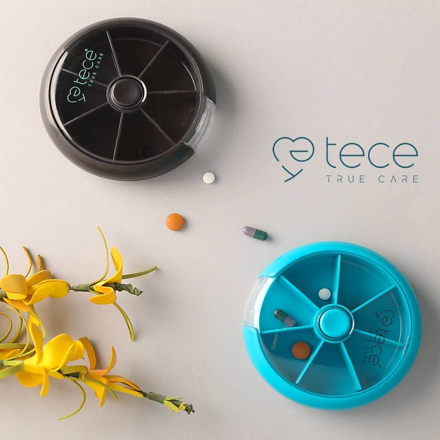 حافظة أقراص دواء من TECE، تحتوي على 4 أقسام، برقم 24.\nمصممة لتنظيم جرعات الدواء اليومية أو لعدة جرعات في اليوم.\nصغيرة الحجم ومريحة للحمل في الجيب أو الحقيبة.