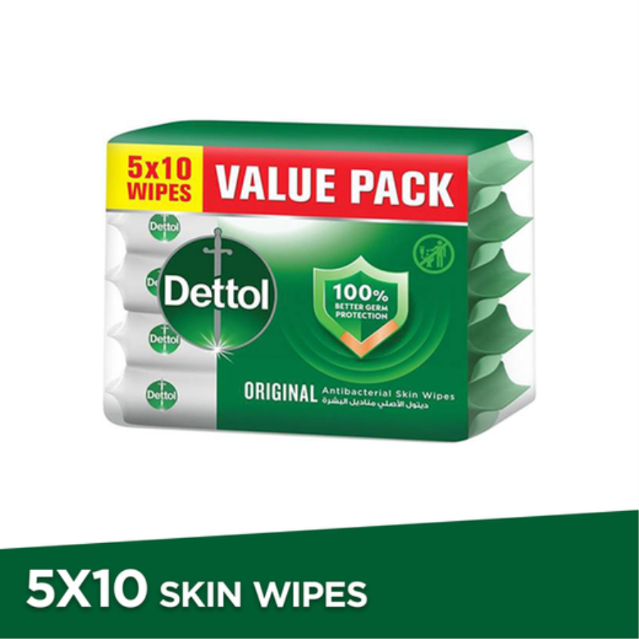 ديتول مناديل العنايه بالبشره حمايه من الجراثيم عبوه عائليه 5 حبات