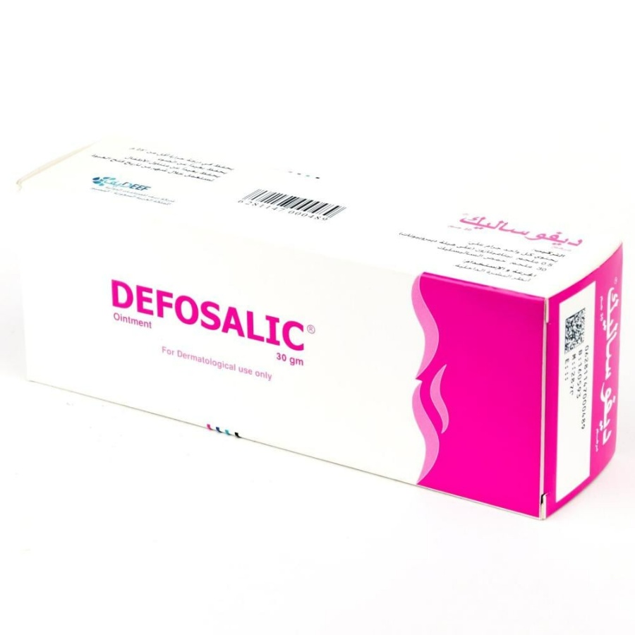 ديفوساليك مرهم 30 جرام هو مرهم موضعي. يشير الاسم إلى أنه يحتوي على مزيج من المكونات، ربما كورتيكوستيرويد ('DEFO') وحمض الساليسيليك ('SALIC'). يستخدم هذا المزيج غالبًا لعلاج الحالات الجلدية الالتهابية والمتقشرة مثل الصدفية أو الأكزيما. يحتوي هذا الأنبوب على 30 جرامًا من المرهم.