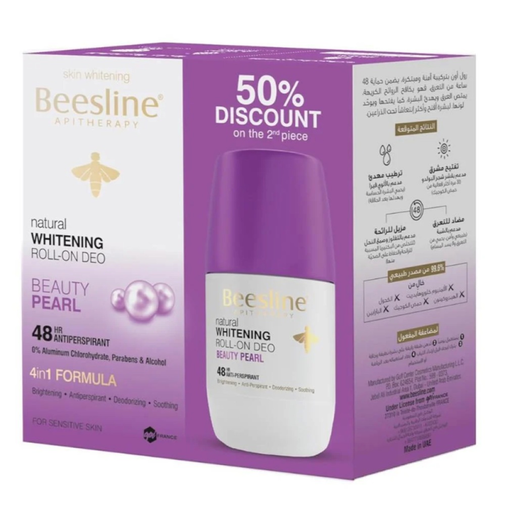 استمتعي بانتعاش يدوم طويلاً وبشرة أفتح وأكثر نعومة تحت الإبطين مع رول أون مزيل الرائحة لتفتيح البشرة من بيزلين (Beesline) برائحة تألق اللؤلؤ (Beauty Pearl) الناعمة والراقية. تركيبة مبتكرة ولطيفة تضمن لكِ حماية فعالة من رائحة العرق، وتعمل في الوقت نفسه على تفتيح البشرة الداكنة وتوحيد لونها.