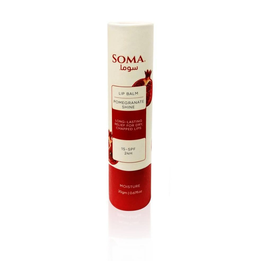 مرطب شفاه (بلسم شفاه) من SOMA بنكهة الرمان، عبوة بوزن 20 جرام. يساعد على ترطيب وتغذية الشفاه الجافة والمتشققة. يوفر حماية ويترك الشفاه ناعمة ومرنة مع نكهة الرمان اللذيذة.
