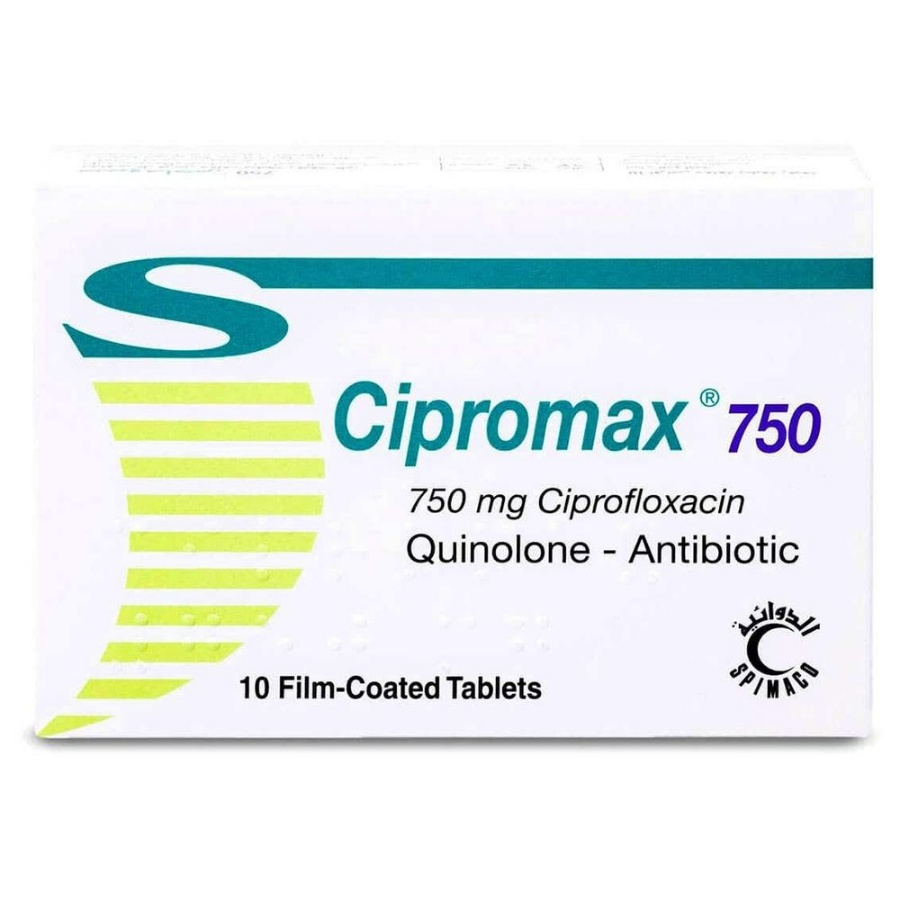 أقراص سيبروماكس 750 ملجم هي تركيبة بجرعة أعلى من هذا الدواء. تحتوي على مضاد حيوي مثل السيبروفلوكساسين، وتستخدم لعلاج العدوى البكتيرية الأكثر شدة. تحتوي هذه العبوة على 10 أقراص، وتتطلب وصفة طبية والالتزام بإرشادات الجرعة المحددة.
