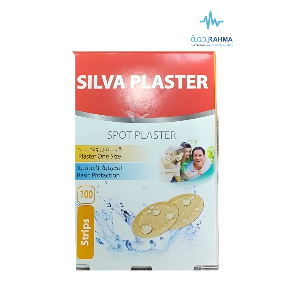 بلاستر جروح من SILVA بشكل دائري صغير (Spot)، عبوة كبيرة تحتوي على 100 لاصق. مثالي للجروح الصغيرة جدًا، لدغات الحشرات، أو البثور. حجمه الصغير يجعله غير ظاهر ومناسبًا للاستخدام على الوجه أو الأماكن المكشوفة.