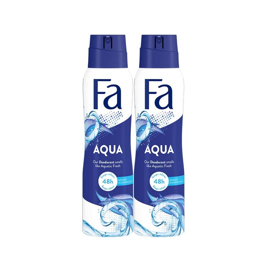 بخاخ مزيل عرق Fa Aqua، يأتي بحجم 150 مل. يتميز برائحة Aqua المنعشة والمنشطة التي توفر إحساسًا بالنظافة والحيوية. يوفر حماية فعالة ضد التعرق ورائحة الجسم ويمنح شعورًا بالانتعاش يدوم لساعات طويلة.
