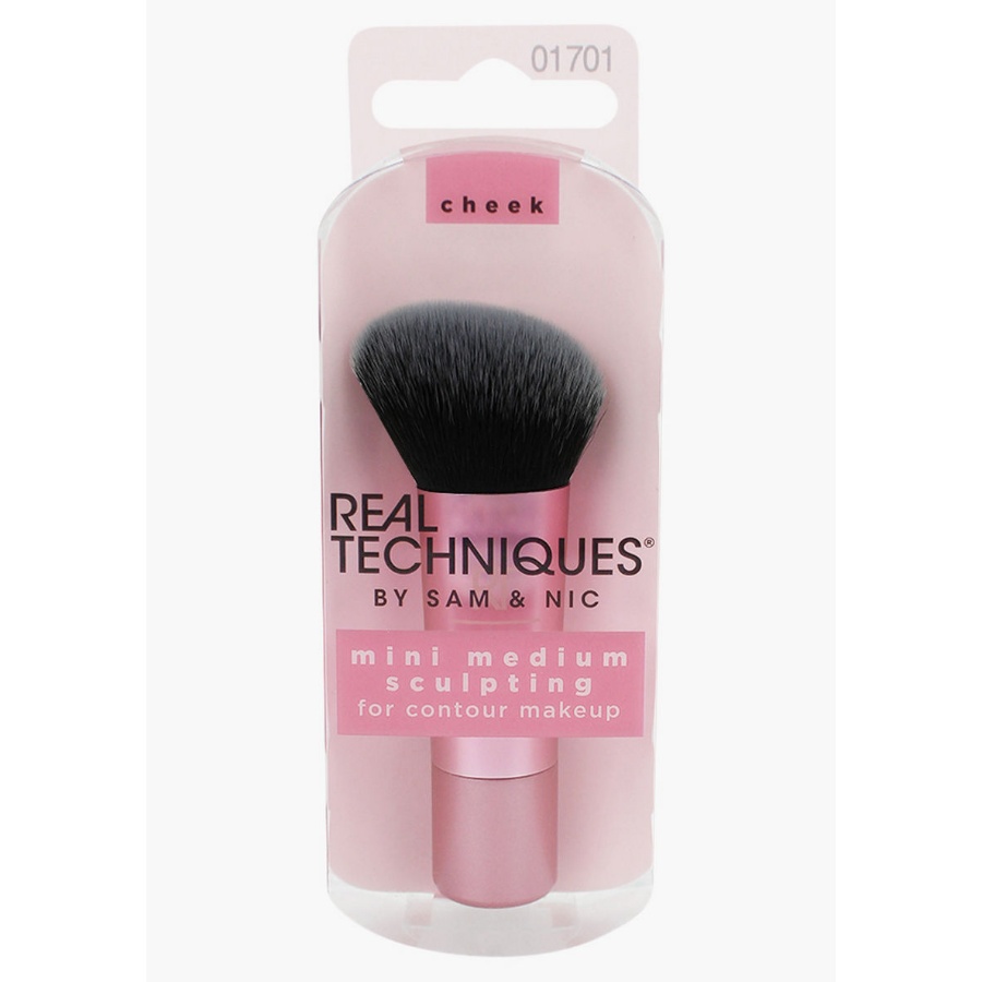فرشاة نحت متوسطة مصغرة من "ريل تكنيكس" رقم 7014، هي نسخة صغيرة الحجم من فرشاة النحت، مثالية لتحديد الوجه بدقة أثناء السفر. تستخدم لتطبيق منتجات الكنتور أو الهايلايتر الكريمية أو البودرة على مناطق أصغر من الوجه. تمنح تحكمًا جيدًا لتحديد الملامح أثناء التنقل.