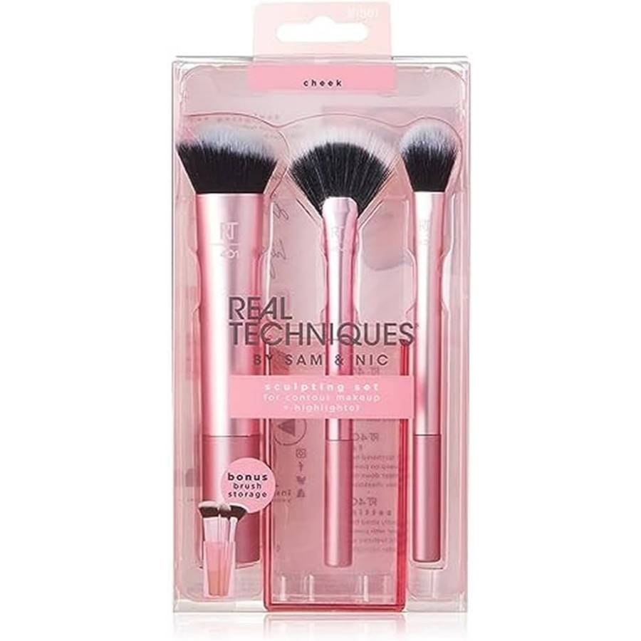 مجموعة النحت من "ريل تكنيكس" رقم 5617، تحتوي على أدوات أساسية مصممة لتحديد وإبراز ملامح الوجه بتقنيات الكنتور والهايلايت. قد تشمل فرشًا للكنتور، فرشًا للهايلايتر، وإسفنجة صغيرة للتفاصيل. تساعد في تحقيق إطلالة وجه منحوتة ومحددة ببراعة.