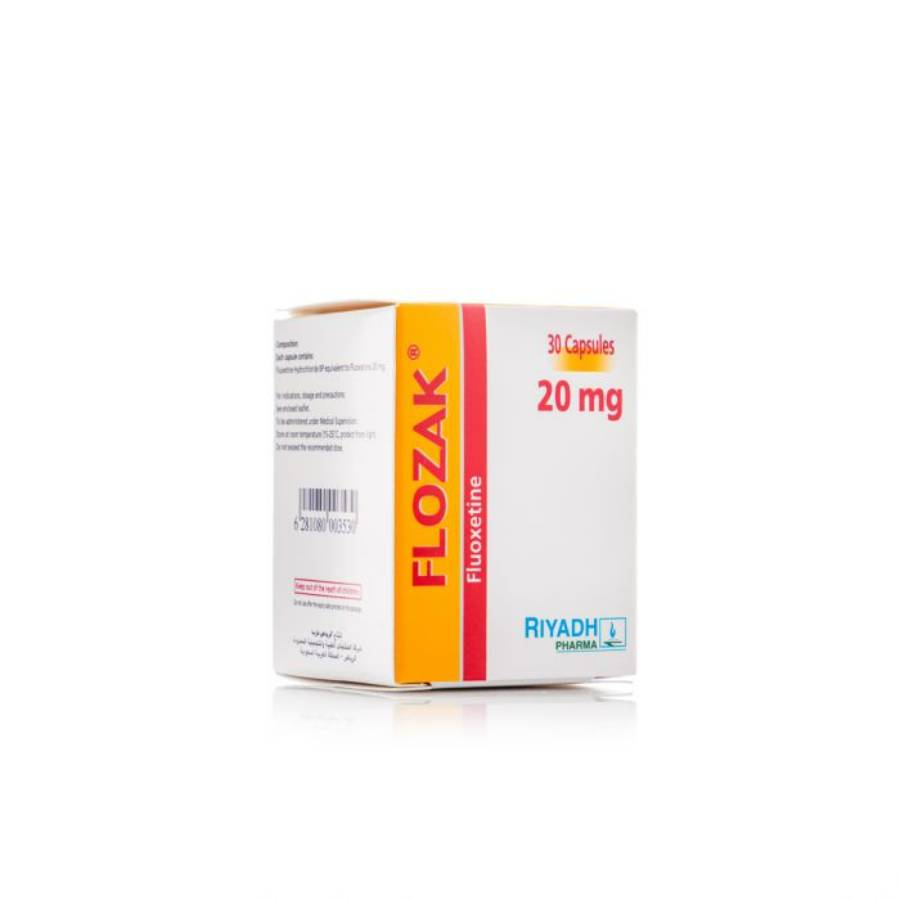 كبسولات Flozak بتركيز 20 ملغ، تأتي في عبوة تحتوي على 30 كبسولة. هذا الدواء هو مضاد للاكتئاب ينتمي لفئة مثبطات استرداد السيروتونين الانتقائية (SSRIs). يستخدم لعلاج الاكتئاب، اضطرابات القلق، والاضطراب الوسواس القهري.