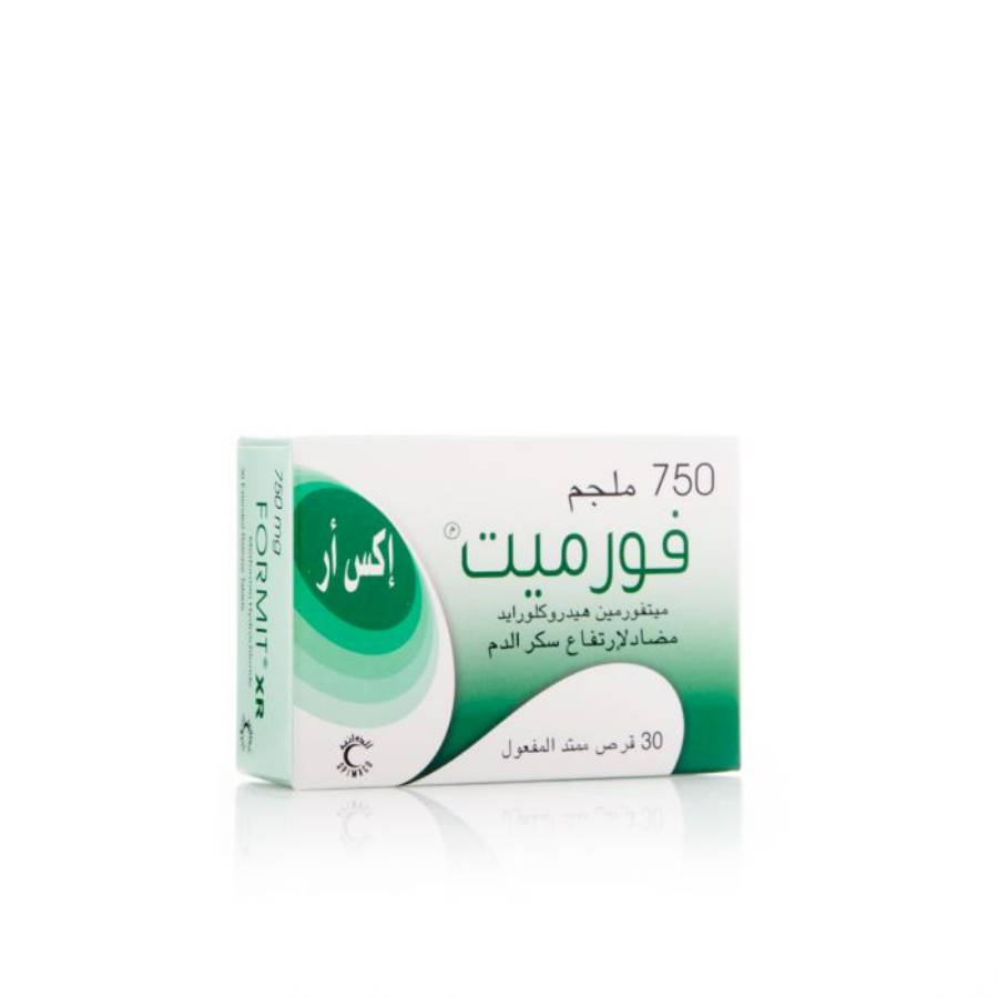أقراص Formit XR (ممتدة المفعول) بتركيز 750 ملغ، تأتي في عبوة تحتوي على 30 قرص. هذا التركيز الأعلى من الميتفورمين في شكل ممتد المفعول يستخدم لعلاج السكري من النوع الثاني. يوفر تحكمًا فعالًا في سكر الدم مع سهولة تناول جرعة واحدة يوميًا غالبًا.