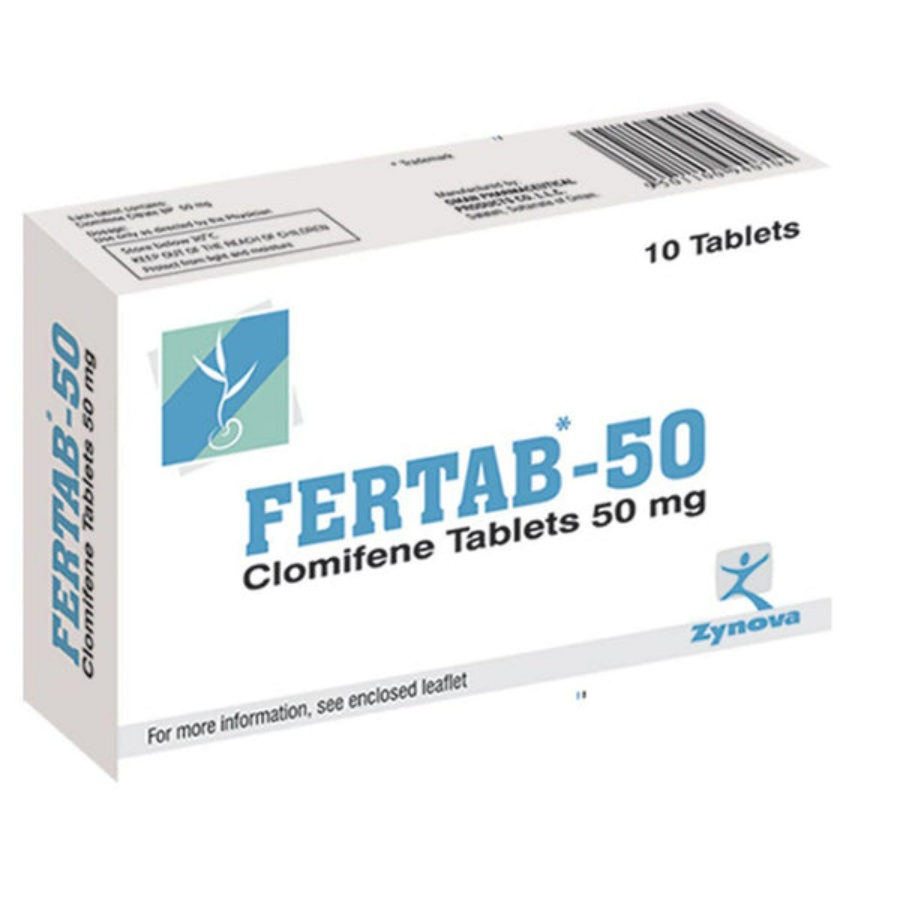 أقراص Fertab بتركيز 50 ملغ، تأتي في عبوة تحتوي على 10 أقراص. هذا الدواء يستخدم لعلاج حالات معينة، وقد يتعلق بالصحة الإنجابية (Fertab قد تشير إلى Fertility). يتم تناول الأقراص وفقًا للتوجيهات الطبية المحددة للحالة.