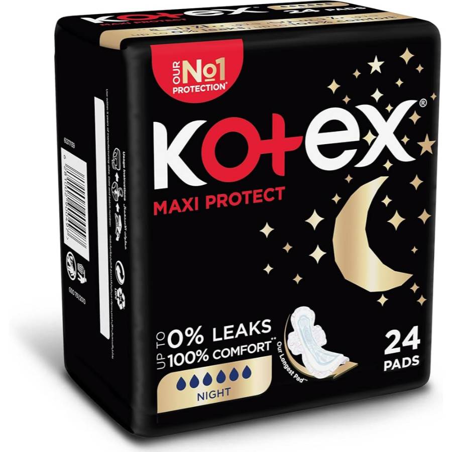 فوط صحية كوتكس ماكسي ليلية، عبوة اقتصادية كبيرة (6 حزم × 24 فوطة = 144 فوطة).