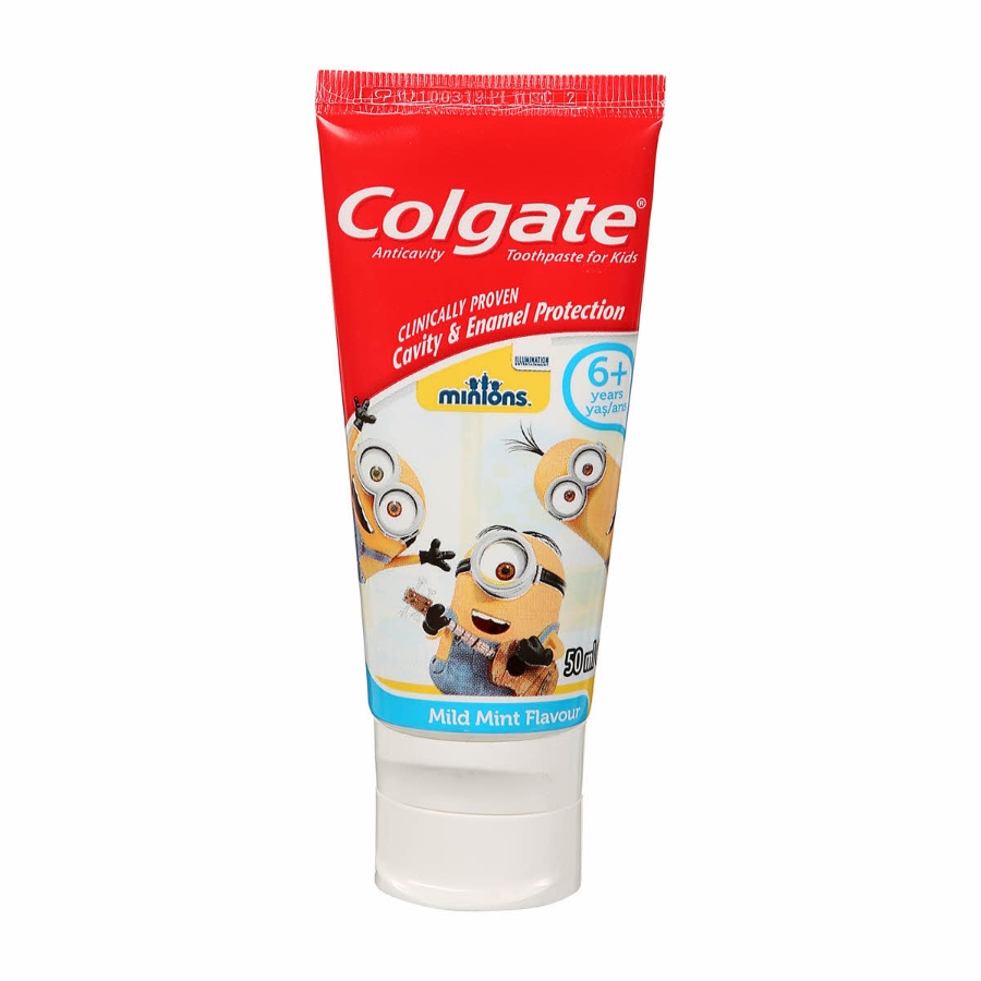 معجون أسنان COLGATE MINIONS بنكهة النعناع اللطيفة للأطفال، بحجم 50 مل. يوفر حماية فعالة من التسوس بنكهة ليست قوية جدًا تناسب الأطفال. تصميم شخصيات المينيونز يجعل التنظيف ممتعًا.