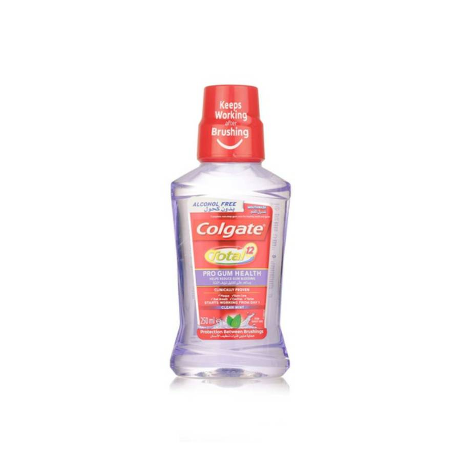 غسول الفم كولجيت Total Pro Gum بحجم 250 مل. جزء من مجموعة Total التي تركز على صحة اللثة. يساعد على تقليل الجراثيم المسببة لمشاكل اللثة. يوفر حماية لمدة 12 ساعة للمساعدة في الحفاظ على لثة صحية.