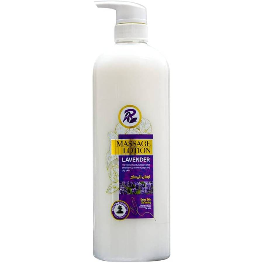 لوشن مساج ممتاز راقي برائحة اللافندر، يأتي في عبوة كبيرة بحجم 1000 مل.