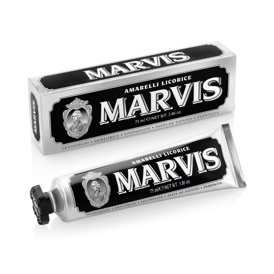 معجون أسنان مارفيس أماريللي ليكوريس (عرق السوس)، يأتي بحجم 75 مل. يتميز بنكهة عرق السوس الحلوة والمميزة. ينظف الأسنان بعمق ويمنح الفم شعورًا بالانتعاش والنظافة.