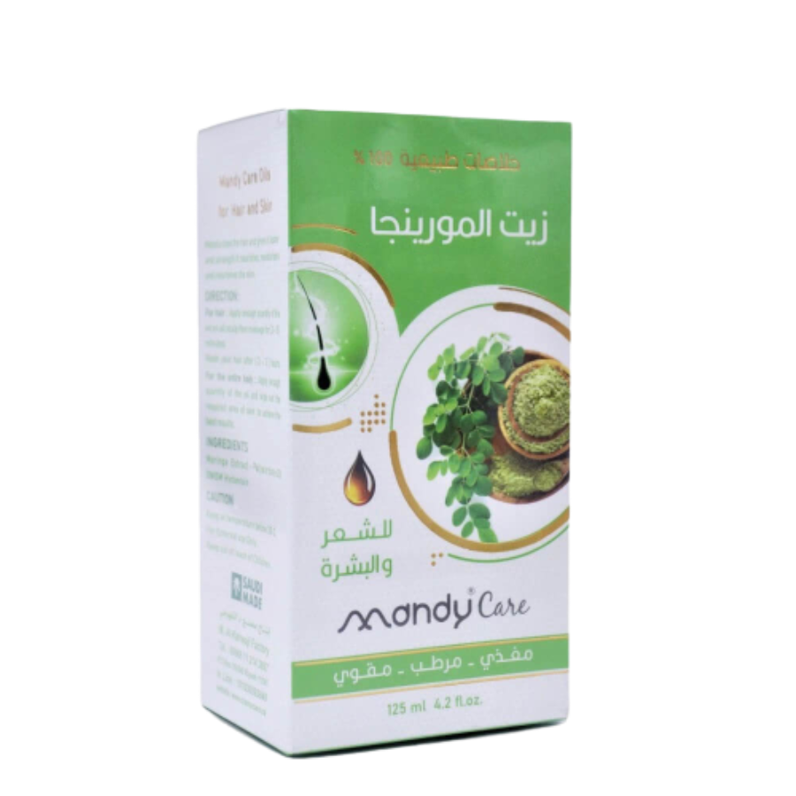 ماندي كير زيت المورينجا للشعر والبشر مصنوع من مكونات طبيعية وآمنة، يحتوي فيتامين أ، وفيتامينات ب، وفيتامين سي لتغذية البشرة وتعزيز نضارتها، يتميز بخصائص مرطبة للشعر تحميه من الجفاف، يحتوي على مضادات أكسدة تحمي البشرة والشعر من العوامل الخارجية