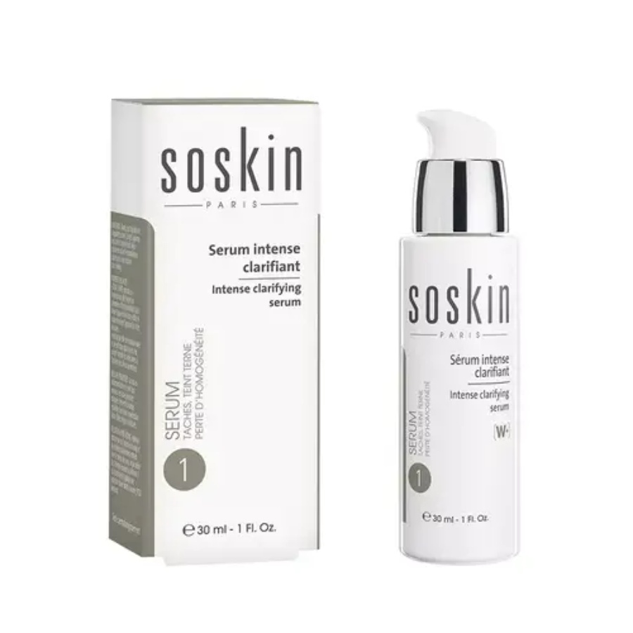 سيروم منقي مكثف من SOSKIN بسعة 30 مل، يحمل الرمز 1079. تركيبة عالية التركيز تستهدف مشاكل مثل البقع والتصبغات. يعمل على توحيد لون البشرة وإضفاء مظهر أكثر صفاءً ونضارة.