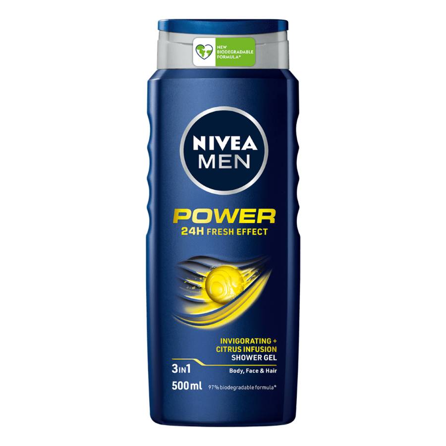 جل استحمام نيفيا للرجال Power Fresh، يأتي بحجم 500 مل.
