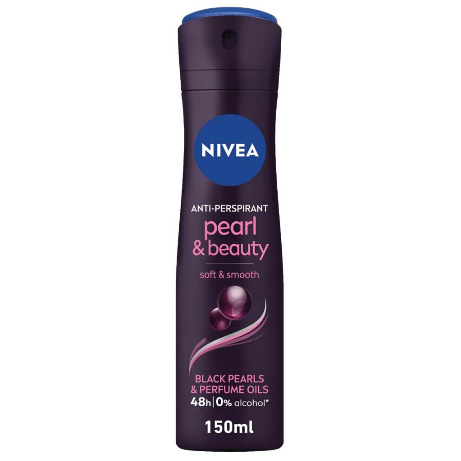 مزيل عرق نيفيا بخاخ نسائي Pearl & Beauty Black، يأتي بحجم 150 مل.