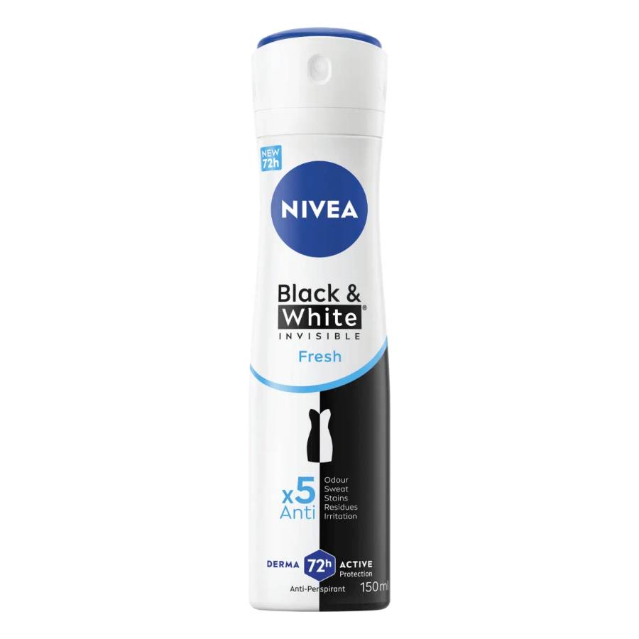مزيل عرق نيفيا بخاخ بلاك آند وايت سيلكي سموث، مضاد للتعرق، بحجم 150 مل.