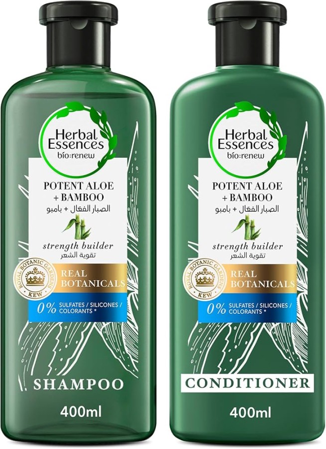 شامبو هيربال إيسنسيس بالألوفيرا والخيزران (400 مل x 6) - شامبو لطيف يحتوي على خلاصة الألوفيرا والخيزران ينظف الشعر ويضفي لمعانًا عليه. طريقة الاستخدام: ضع الشامبو على الشعر المبلل، ودلّك، ثم اشطفه. استخدم البلسم المناسب للحصول على أفضل النتائج.