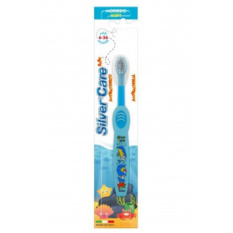 فرشاة أسنان للأطفال من سيلفر كير بشعيرات ناعمة ومعالجة بالفضة، توفر حماية مضادة للبكتيريا لتنظيف لطيف وآمن.