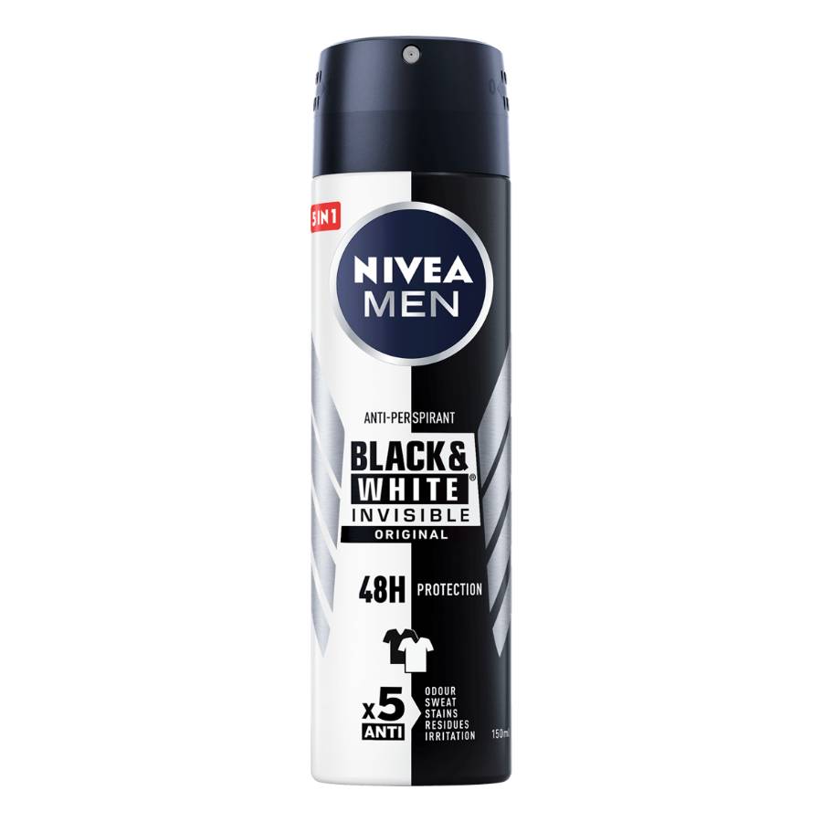 مزيل عرق نيفيا بخاخ للرجال Invisible Black & White Power، يأتي بحجم 150 مل.