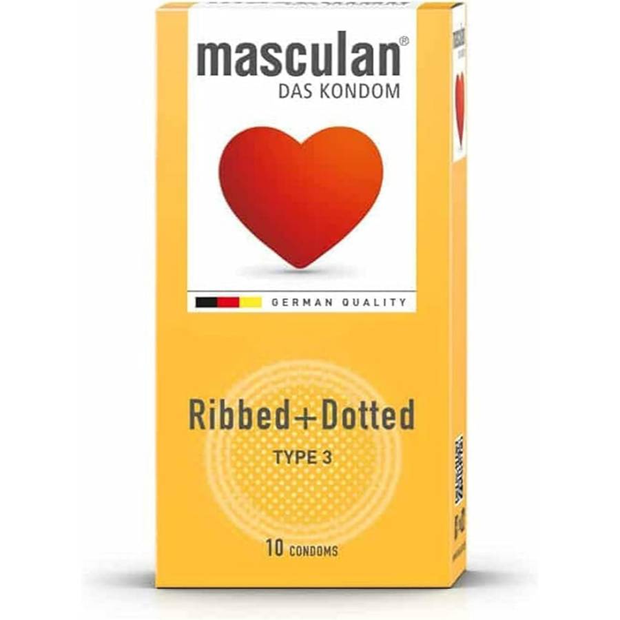 واقي ذكري ماسكولان مضلع ومُنَقَّط، يأتي في عبوة تحتوي على 10 قطع. يجمع بين المضلعات والنقاط لزيادة التحفيز لكلا الشريكين. يوفر حماية فعالة وموثوقة.