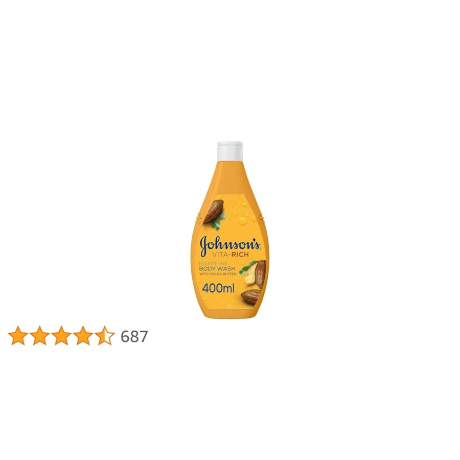 غسول الجسم جونسون فيتا ريتش بزبدة الكاكاو بحجم 400 مل، يوفر تنظيفًا مغذيًا للبشرة الجافة.
