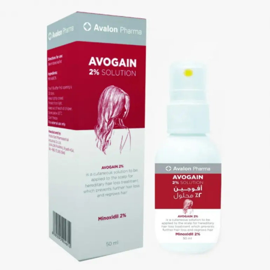 محلول بخاخ أفا لون أفوجين 2% (AVALON AVOGAIN 2% SPRAY SOLUTION) هو محلول موضعي مصمم للتطبيق، على الأرجح على فروة الرأس. بناءً على الاسم، فإنه يحتوي على الأرجح على مينوكسيديل بتركيز 2%. يستخدم هذا المنتج عادة لإعادة نمو الشعر ويأتي في زجاجة بخاخ بحجم 50 مل.