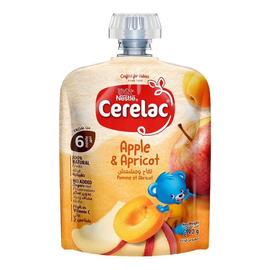 هريس Cerelac بنكهة التفاح والمشمش، مناسب للأطفال بعمر 6 أشهر فما فوق. هذا الكيس الفردي بوزن 90 جرام يقدم مزيجًا ناعمًا ومغذيًا من التفاح والمشمش، مثالي لتقديم مجموعات الفاكهة المبكرة. إنه خيار مريح وصحي.