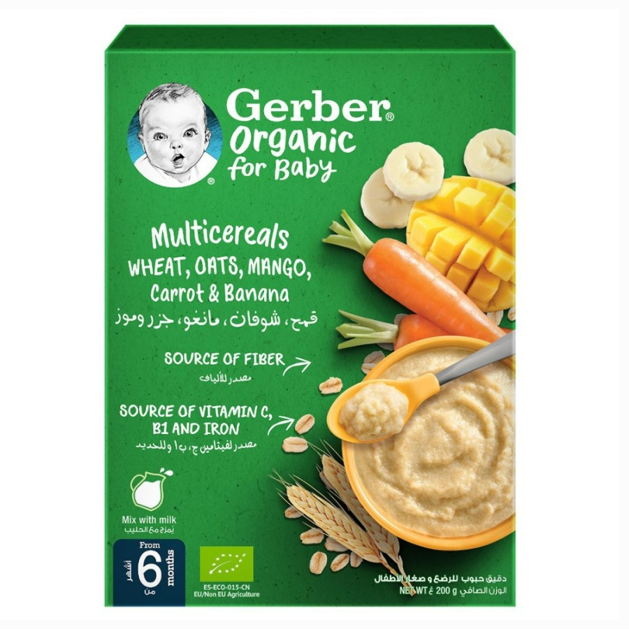 Gerber Organic Cereal Wheat Oats & Mango +6 Months 200 Gm