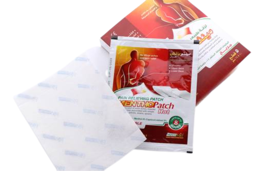 لزقة طبيعية مينثو باتش حار.يستمر المفعول حتى ٨ ساعات. راحة مؤكدة من:الآلام الطفيفة وألم العظلات.والمفاصل المرتبطة بآلام الظهر البسيطة. والتهاب المفاصل،الالتواء، والكدمات.تحتوي العلبة على ٥ قطع ( ١٠ x ١٤ سم)المكونات الفعالة:المنثول ٤ ٪خلاصة الفلفل الحار ٥ ٪