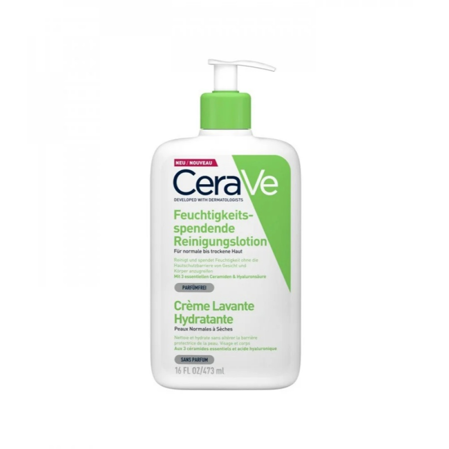 CeraVe Moisturizing Lotion for Dry to Normal Skin - 473 ml A cleanser can remove dirt makeup and other grime but a hydrating cleanser like CeraVe Hydrating Cleanser can do all that without disrupting the protective barrier. Natural skin or stripping the skin of its natural moisture. Created with dermatologists CeraVe Facial Cleanser & Moisturizer is a gentle face wash with Ingredients like ceramides and hyaluronic acid work to restore the skin's natural barrier to help lock in moisture. CeraVe Hydrating Cleanser is designed to cleanse and refresh skin without over-stripping or leaving it feeling tight and dry. It contains three essential ceramides to restore Skin barrier hyaluronic acid to hydrate skin and MVE Delivery Technology to provide skin with a continuous stream of nourishment this non-clogging face wash is a go-to. Effective yet non-irritating to start any skincare regimen. Best for normal to dry skin. Features and benefits: Suitable for normal to dry skin. Gently removes dirt oil and makeup without leaving skin feeling tight or dry. MVE Technology: This patented delivery system continuously releases moisturizing ingredients for all-day hydration. Ceramides: Helps restore and maintain the skin's natural barrier. Hyaluronic Acid: Helps retain skin's natural moisture Non-comedogenic non-irritating and fragrance-free Developed with dermatologists Accepted by the National Eczema Association How to use: Wet the skin with lukewarm water. Massage the cleanser into the skin in a gentle circular motion. rinse