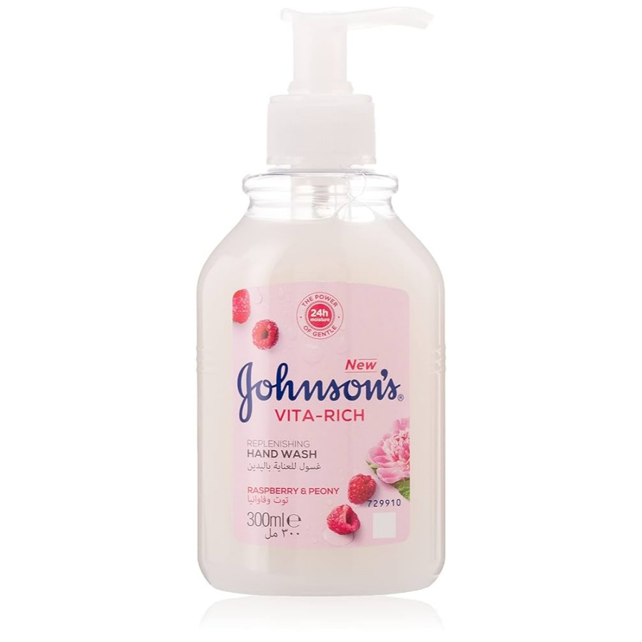JOHNSON VITA RICH RASPBERRY & PEONY HAND WASH in a 300ml size.
