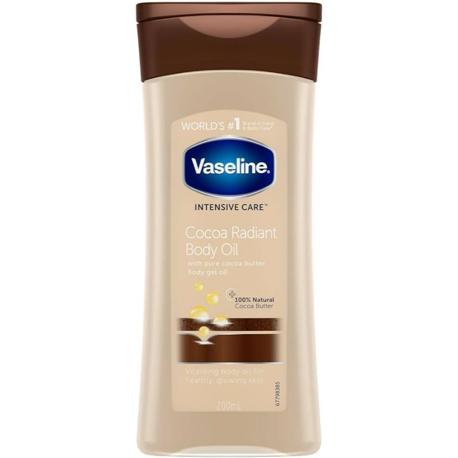 Vaseline Intensive Care Cocoa Radiant Lotion is a body moisturizer designed to restore the skin's natural glow and provide deep hydration. It contains pure cocoa butter and shea butter which nourish the skin leaving it soft and with a healthy shine. Its formula moisturizes dry and dull skin without leaving a greasy feel making it soft and radiant. Daily use is recommended for optimal results.